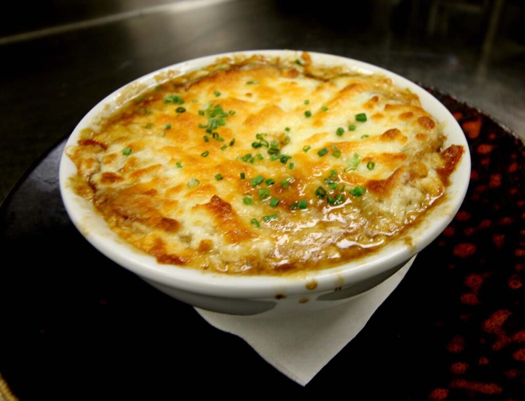 Caramelized Onion in White Wine Beef Stock with Croutons, Swiss and MozzarellaFRENCH ONION SOUP
